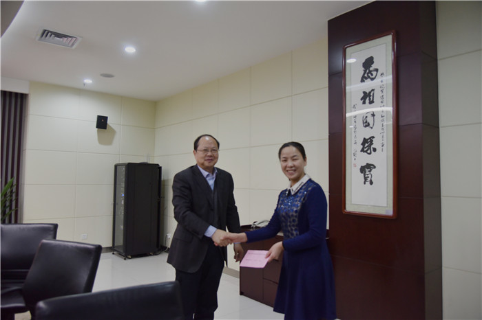 陕投集团总经理宋老虎向陕西省特殊贡献专家朱芳香送上慰问金