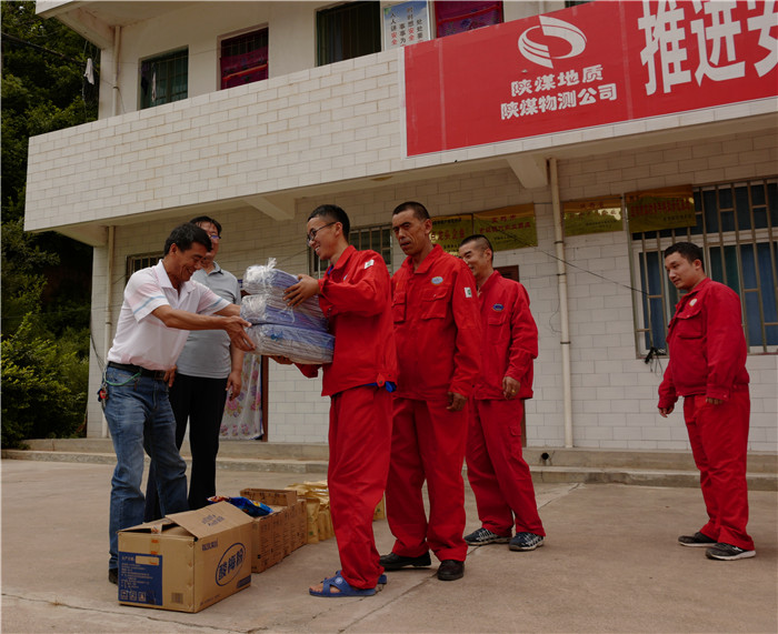 杨敬敏主席给物测公司园子沟三维地震勘探项目部职工分发送清凉物品