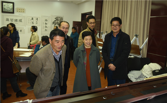 公司工会还专门邀请陕煤地质工会杨敬敏主席等一行来到现场。杨主席对本次活动给予了高度评价并对每幅参展作品进行了一一点评。在点评的基础上,又给大家讲解了一些书法、绘画及摄影方面的知识及技巧,并现场泼墨为大家做了书法写作指导。大家纷纷表示杨主席的点评和指导让大家对自己的作品有了重新认识,获益匪浅。