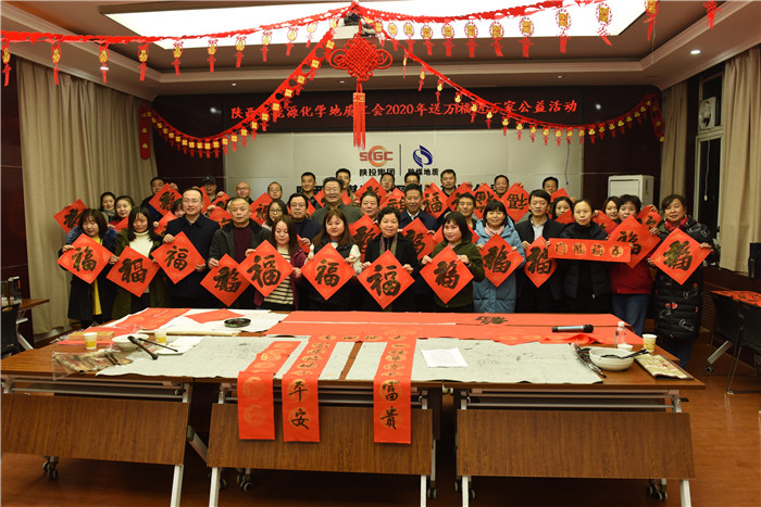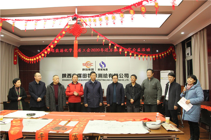 “瑞鼠迎春到,翰墨暖人心”,1月15日上午,伴随着西安今冬的第一场瑞雪,陕西省能源化学地质工会2020年送万福进万家公益活动走进我公司。陕西省能源化学地质工会主席张嗣华和副主席、女工委主任刘燕莉、陕煤地质工会主席杨敬敏以及公司领导班子成员出席了本次活动。