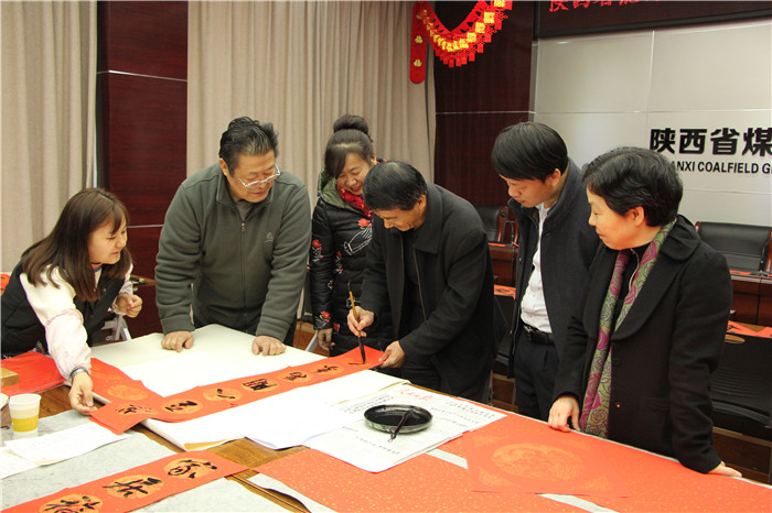 活动动邀请了国家一级美术师,陕西骊山书画院院长,国家电网西安供电局书画协会会长胡承海,陕西省职工文联书法协会理事、陕西省对外文化交流协会副会长,原铜川矿务局生产部长王泰昌以及陕煤地质工会主席杨敬敏等一同为大家泼墨送“福”。