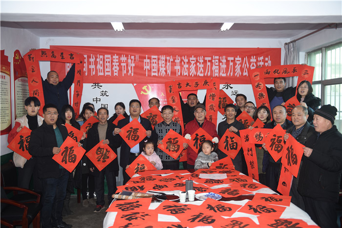 2020年1月19日,为了贯彻落实习近平总书记关于工人阶级和工会工作的重要论述,扎根人民,到职工中去,到群众中去,按照省总、省能化地质工会部署安排,由省煤田地质工会组织的“同心同书祖国春节好”中国煤矿书法家送万福进万家公益活动走进陕西省一三一煤田地质有限公司,活动的内容有现场创作送“福”字、写春联等,唱响主旋律、讴歌新时代,凝聚正能量,为基层职工群众送上悦目暖心的新春祝福。