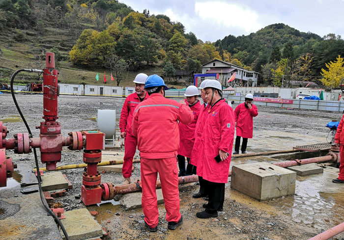 在陕镇页1HF井现场,雷鸣一行查看了陕镇页1HF井试气流程,听取了现场工作人员的介绍,并与现场施工人员亲切交谈,详细询问工施人员工作、生活情况,对他们的辛勤付出表示慰问。