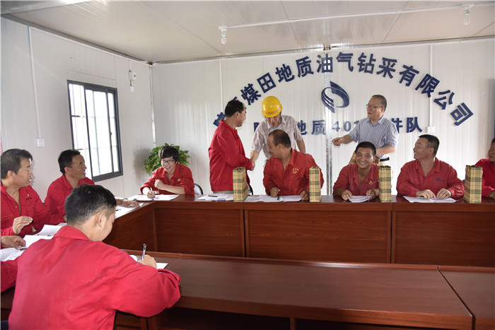 陈主席每到一个项目部,都要坐下来与员工促膝长谈,了解他们现在有关运营、生产、安全等方面的情况,并把慰问品送到工作在钻机的一线职工手上,语重心长地说到:“大家在工作中辛苦了,这几天天气十分炎热,我们给大家带来了茶叶和毛巾,工作的时候一定要注意防暑,保重身体。”随后,陈主席还检查了各个支部“两学一做”学习教育活动的开展情况,陈主席说:“在野外工作,党员分布比较分散,为了按时完成生产要求,集中学习有一定的困难,客观现实情况既然很难改变,那咱们变通学习方式,通过微信、QQ这些媒介进行送学活动,争取不落下任何一个党员。”